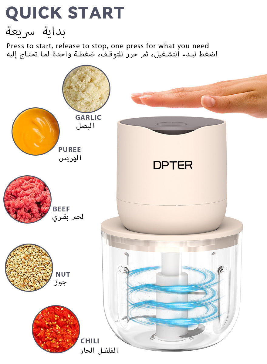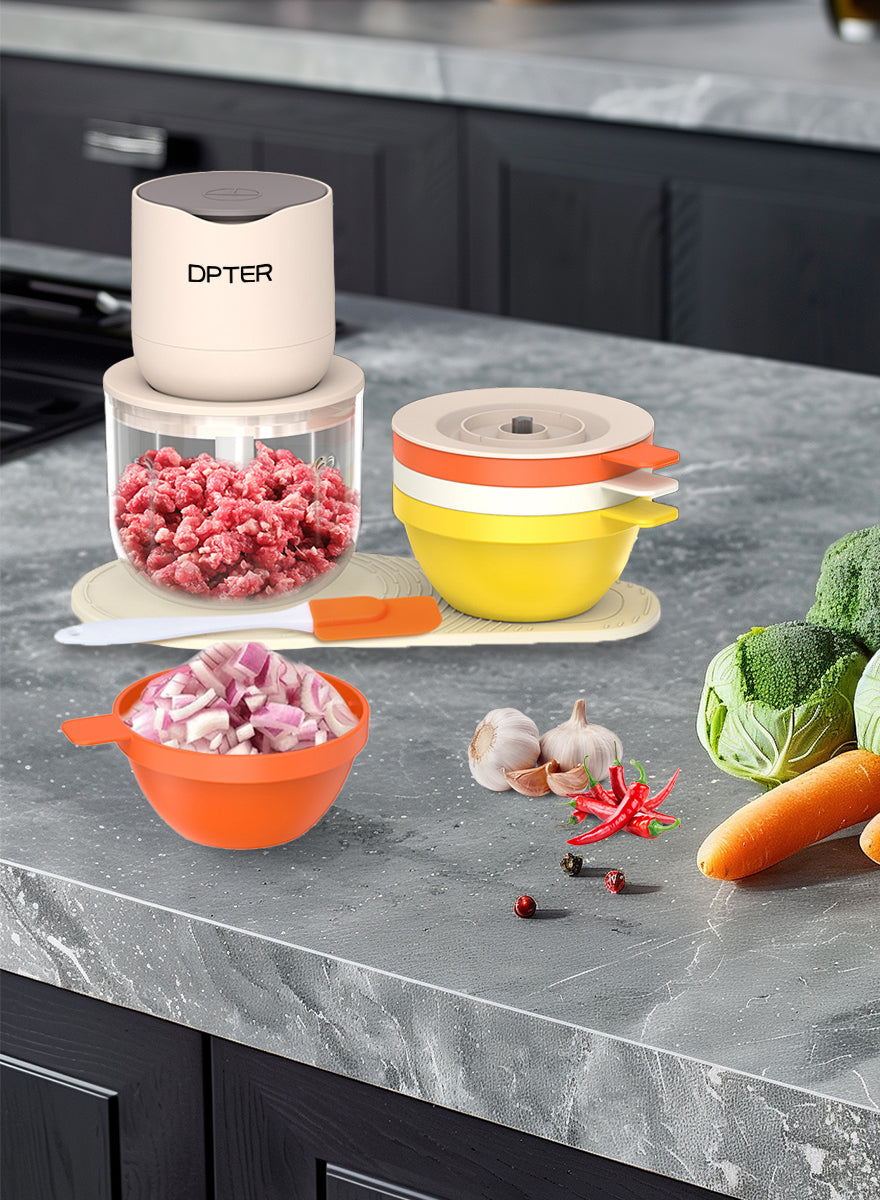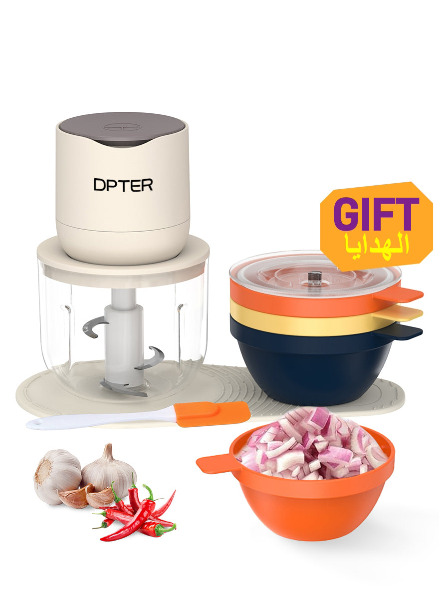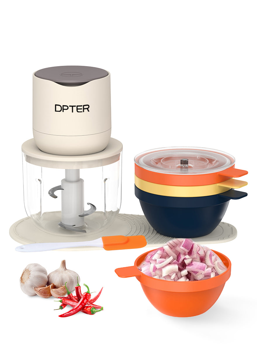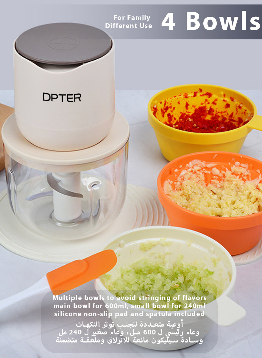 DPTER Electric Food Chopper, Mini Vegetable Garlic Chopper Food Processor with 3 Extra Bowls and Silicone Scraper, 600 mL
