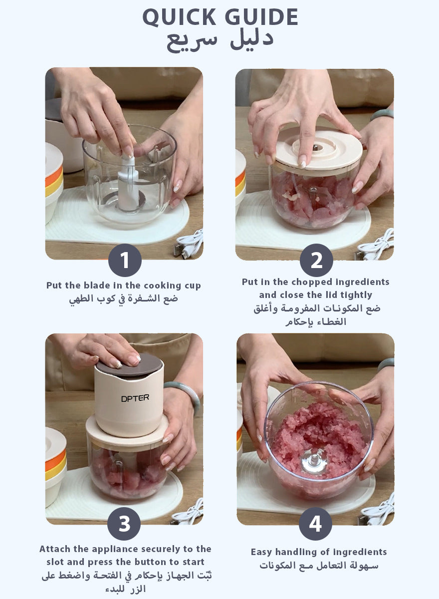 5.Efficient stainless steel quadruple blade for even and fine chopping of ingredients